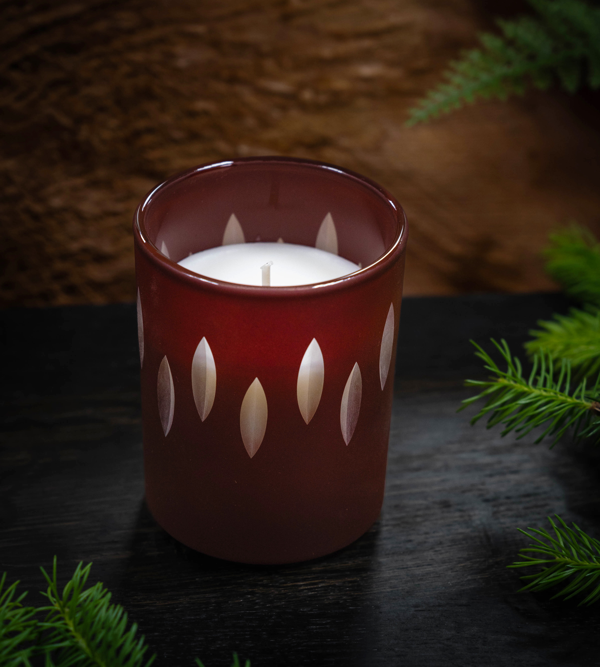 Każda świeca powstaje w ręcznie formowanym szkle hutniczym – tworzonym z rozżarzonej masy w temperaturze ponad 1450°C. Artysta nadaje mu kształt bez użycia maszyn, prowadząc szkło z precyzją i intuicją, aż przybierze ostateczną formę.