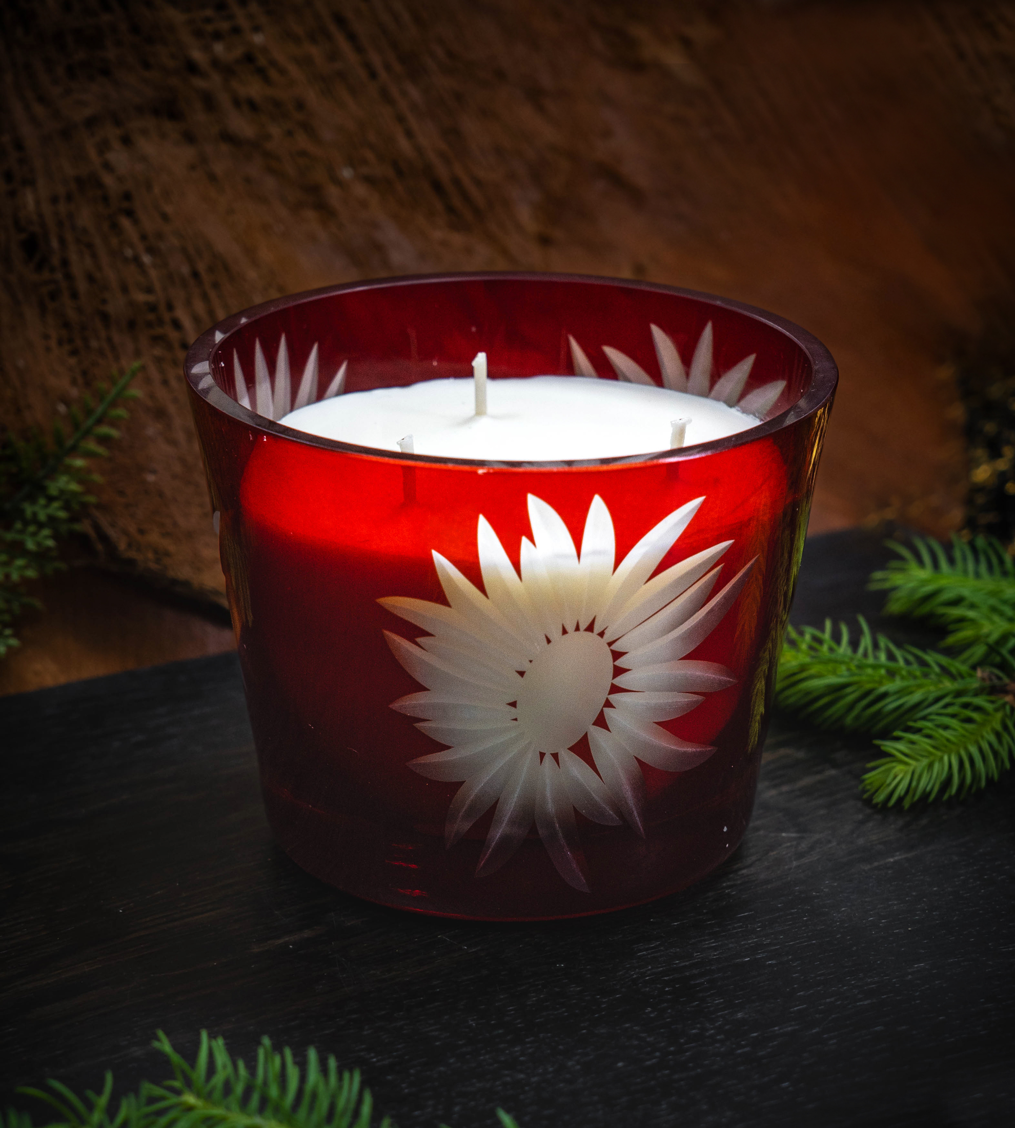 Świeca wypełniona jest certyfikowanym woskiem sojowym – biodegradowalnym, wolnym od GMO i toksyn, pozyskiwanym z upraw przyjaznych środowisku.
