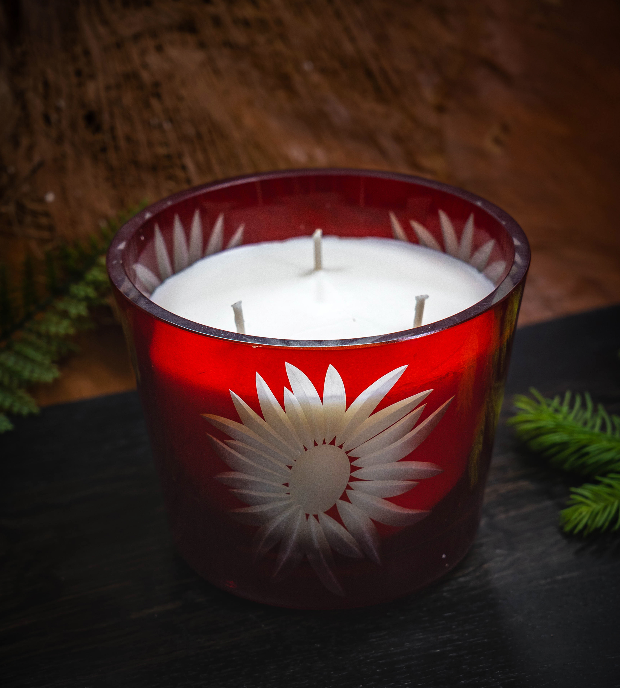 Każda świeca powstaje w ręcznie formowanym szkle hutniczym – tworzonym z rozżarzonej masy w temperaturze ponad 1450°C. Artysta nadaje mu kształt bez użycia maszyn, prowadząc szkło z precyzją i intuicją, aż przybierze ostateczną formę.