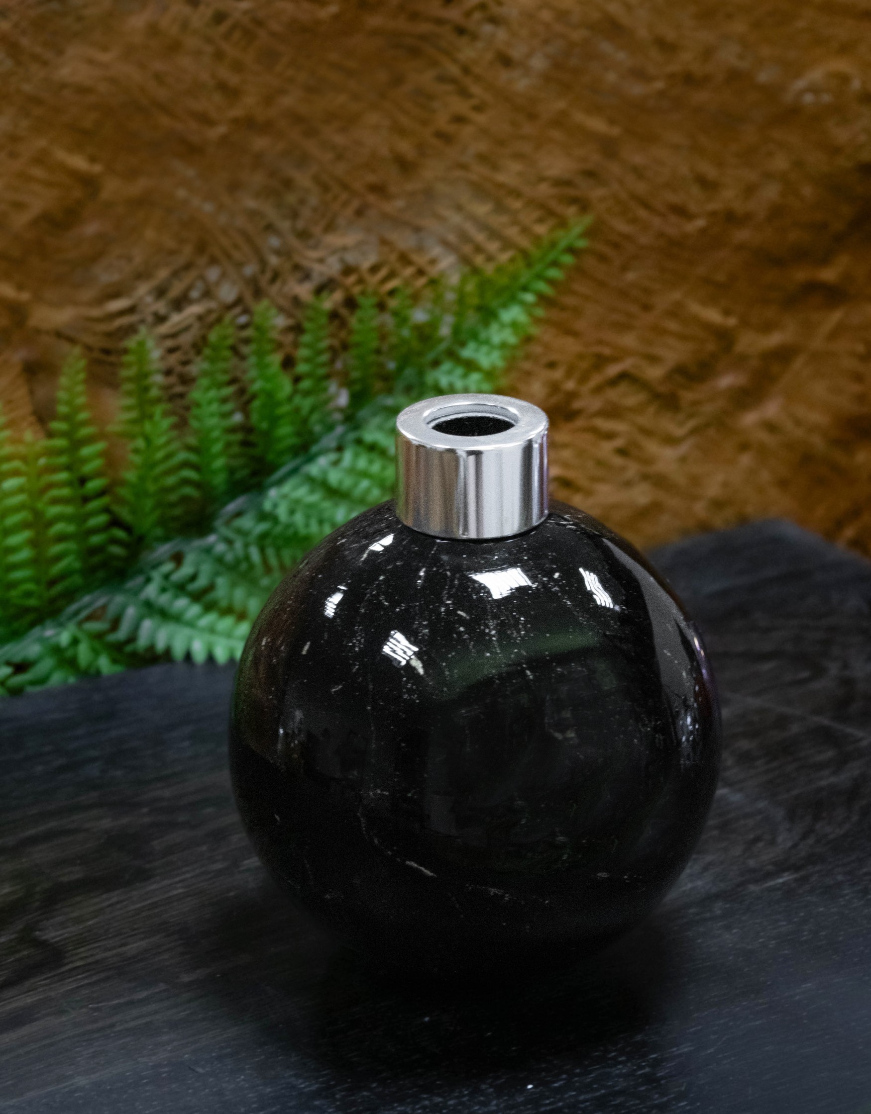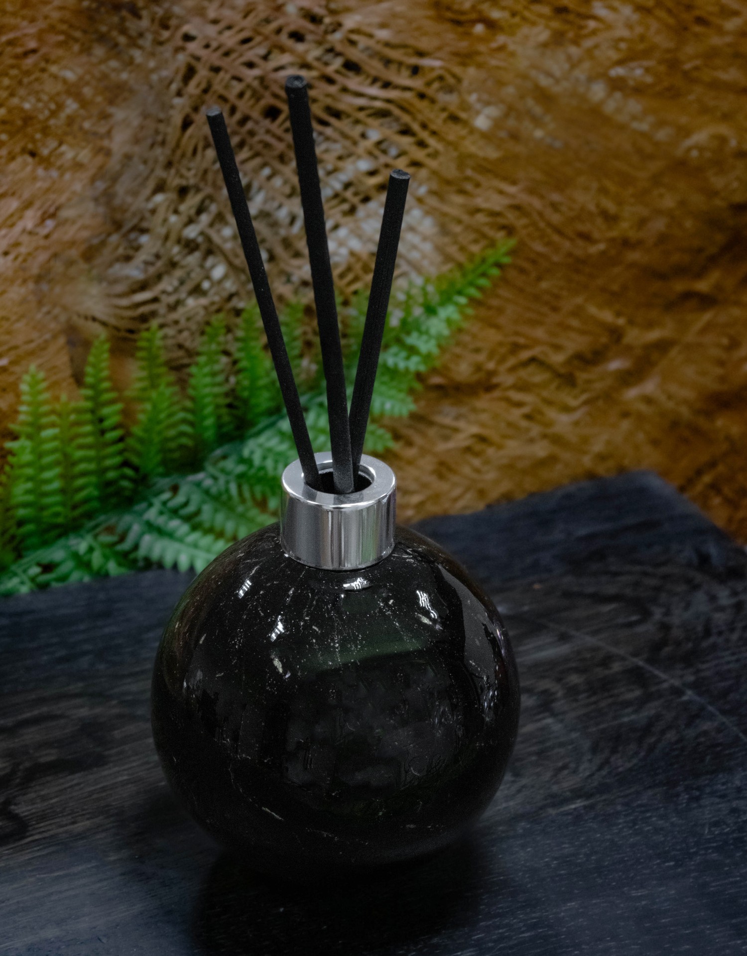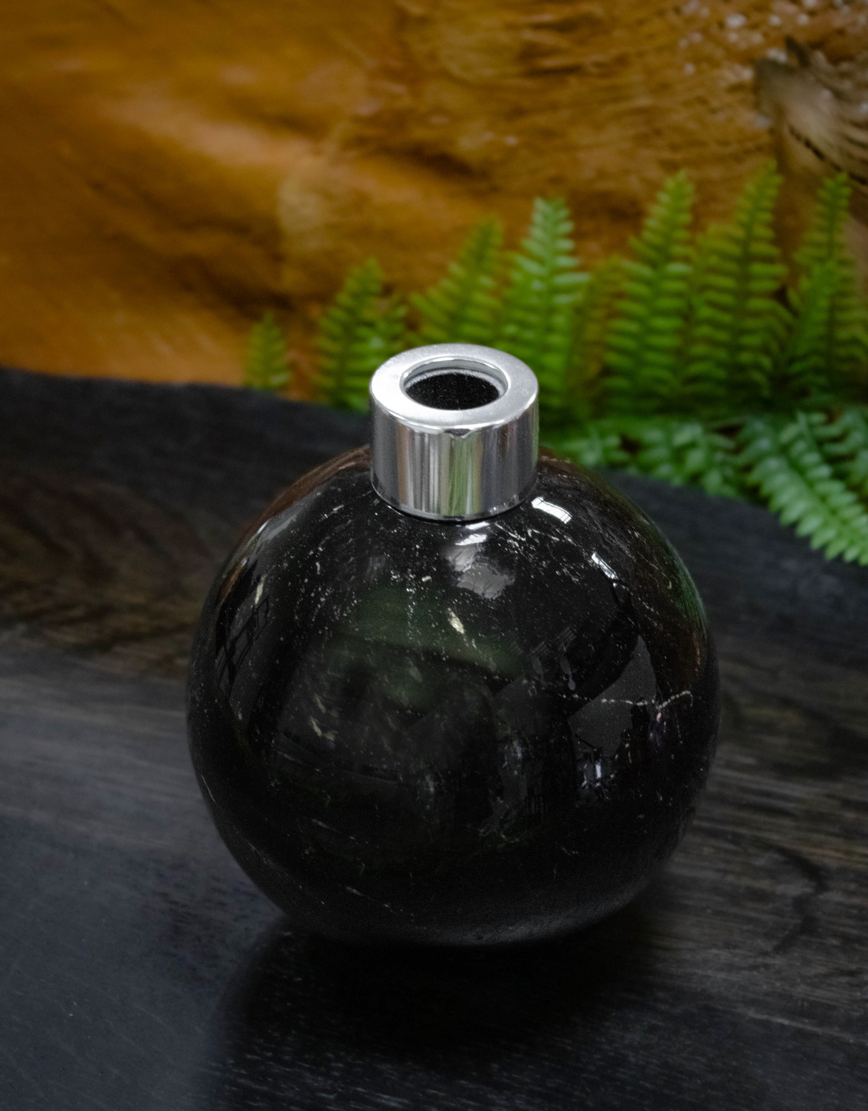 Black Galaxy to wyjątkowy dyfuzor zapachowy wykonany ręcznie ze szkła artystycznego w głębokim, czarnym kolorze z delikatnymi złotymi drobinkami. Jego powierzchnia przywołuje skojarzenia z nocnym niebem usianym gwiazdami – elegancki i nowoczesny akcent do każdego wnętrza.