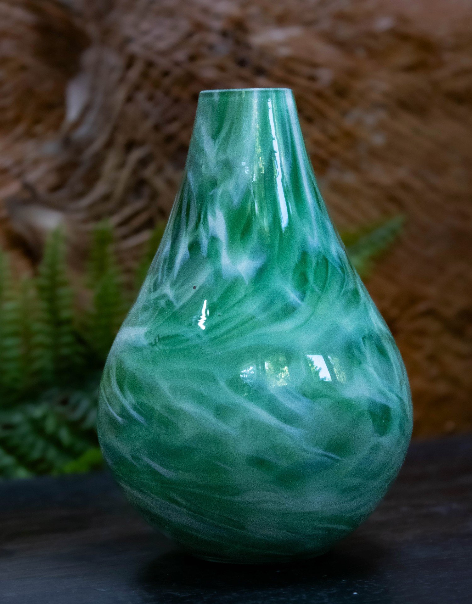 Emerald Mist Petite to mniejsza, kompaktowa wersja modelu Emerald Mist – ręcznie wykonany dyfuzor zapachowy ze szkła artystycznego. Dzięki smukłej formie i zielonym, delikatnie mlecznym barwom, dyfuzor ten stanowi nie tylko źródło przyjemnego zapachu, ale również elegancki element dekoracyjny.