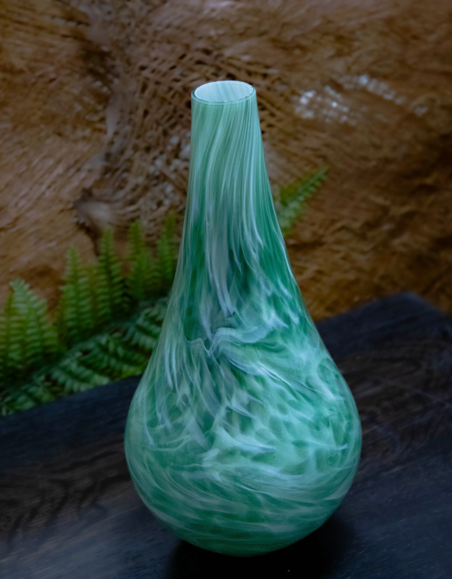 Odkryj kojącą siłę natury zamkniętą w szklanej formie z dyfuzorem Emerald Mist. Ten ręcznie wykonany flakon wyróżnia się intensywną zielenią o mlecznym, niemal mglistym zabarwieniu – przywodzącym na myśl poranną rosę i leśną świeżość.