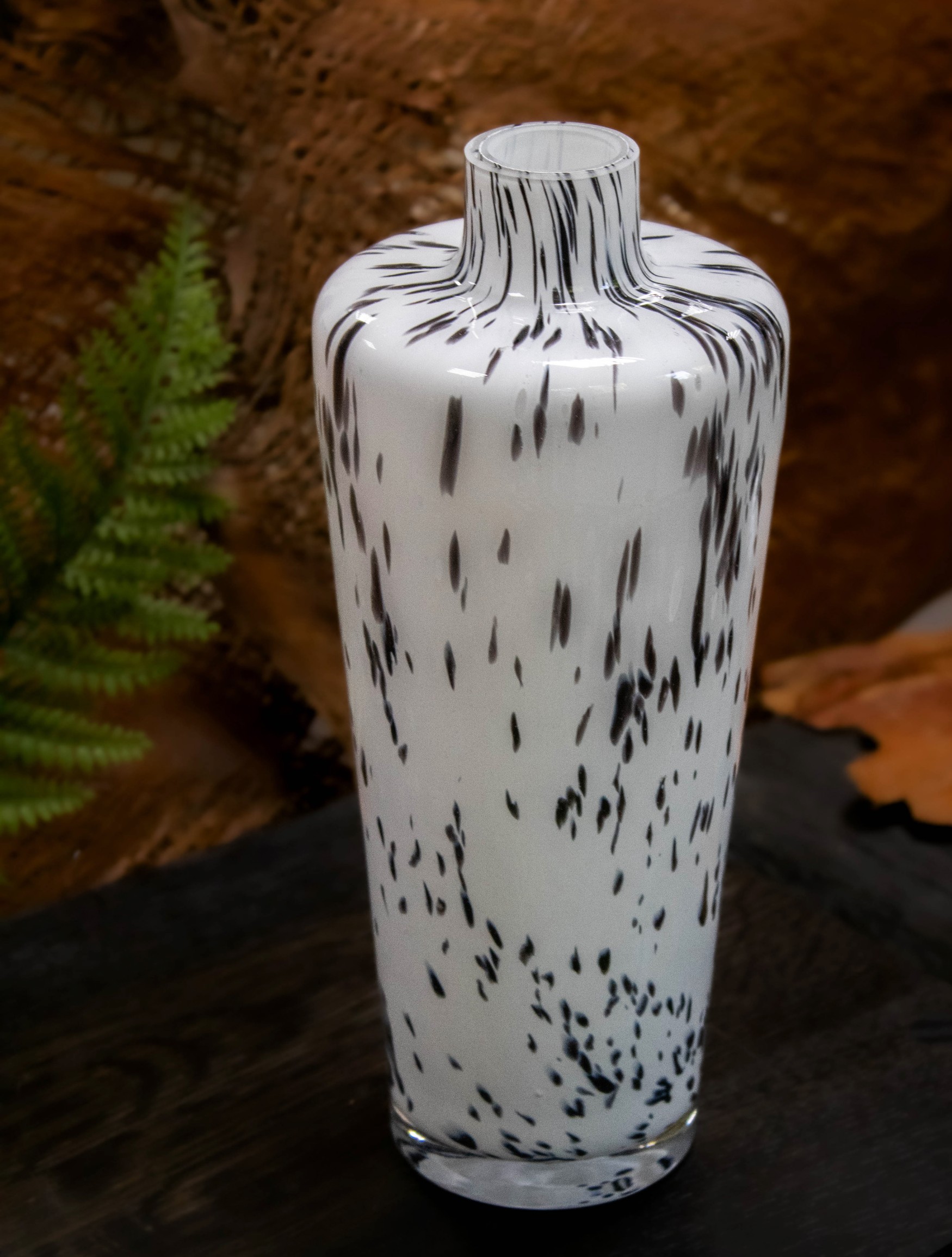Zanurz się w spokojnej elegancji dyfuzora Frosted Ash. Ręcznie wykonane szkło, przypominające zamgloną taflę lodu, zdobione czarnym, organicznym wzorem – niczym popiół osiadający na śniegu. Ten subtelny, artystyczny wzór wprowadza do wnętrza równowagę pomiędzy naturą a nowoczesnym designem.