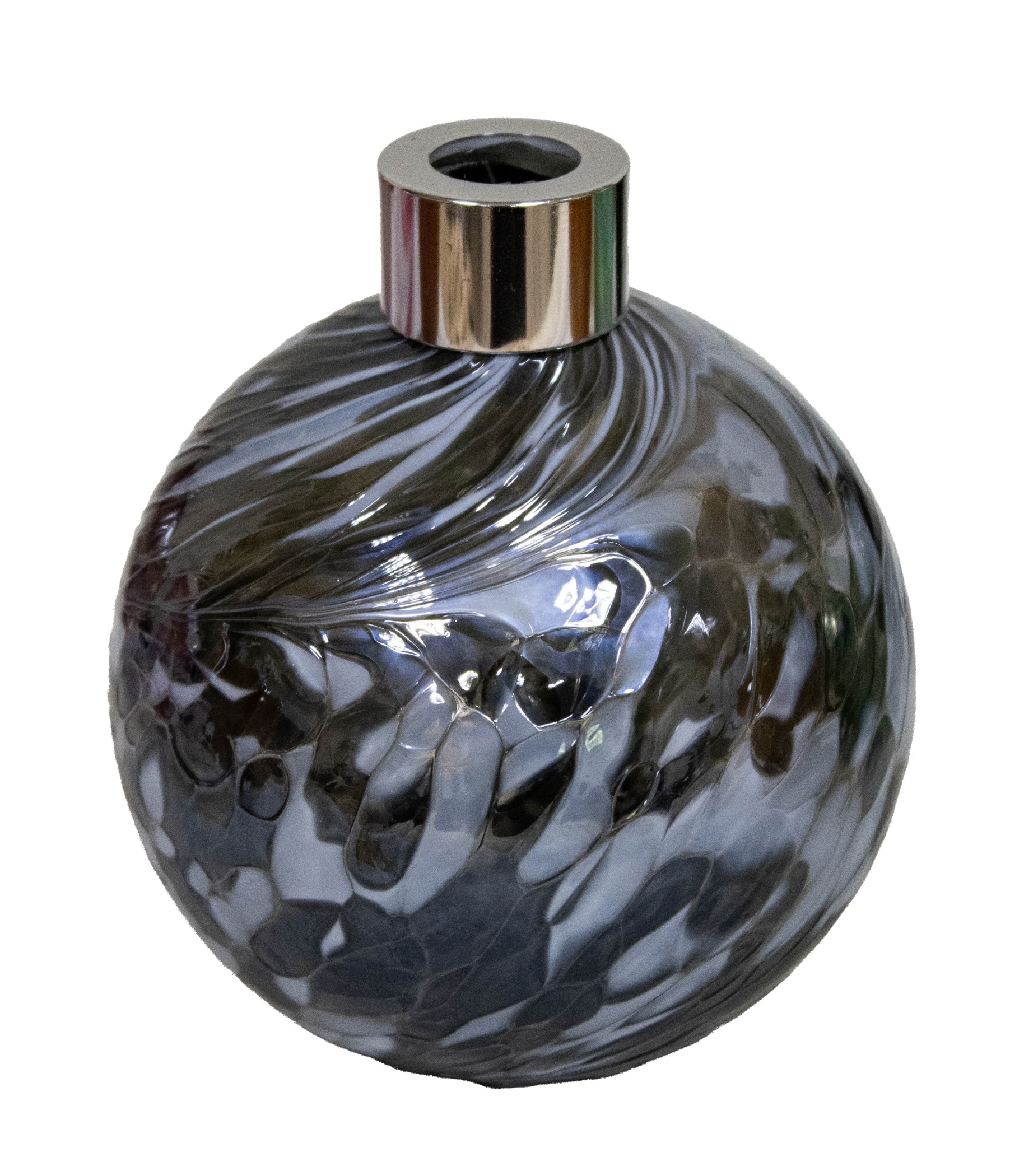 Smoky Quartz to elegancki dyfuzor zapachowy wykonany ręcznie ze szkła artystycznego w odcieniach grafitu, srebra i szarości. Bogata faktura i subtelny połysk tworzą efekt przypominający dymne kwarce, dodając wnętrzu nuty tajemniczości i wyrafinowania.