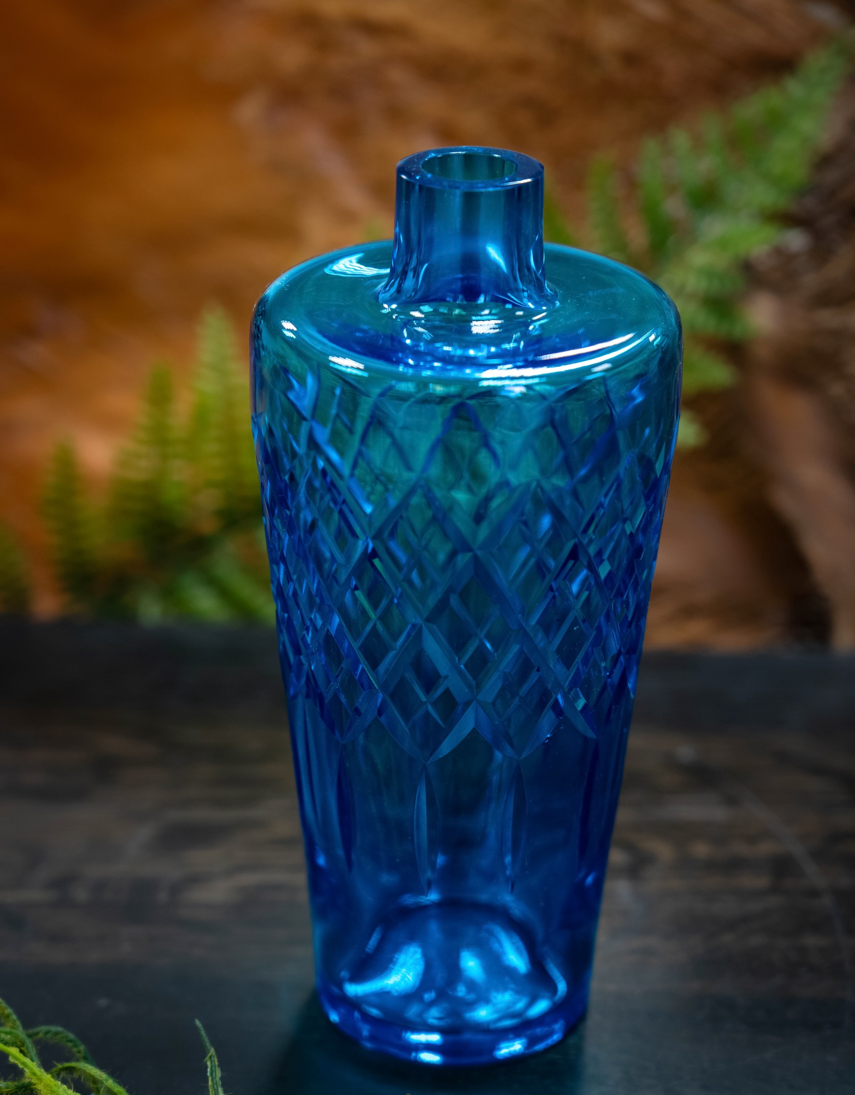 Wprowadź do swojego wnętrza powiew świeżości i elegancji. Aromatic Azure Cut to ręcznie wykonany dyfuzor zapachowy z lazurowego szkła, ozdobiony subtelnym, szlifowanym wzorem inspirowanym kryształami. Głęboki błękit w połączeniu z elegancką formą sprawia, że to nie tylko praktyczny odświeżacz powietrza, ale również wyjątkowa dekoracja.