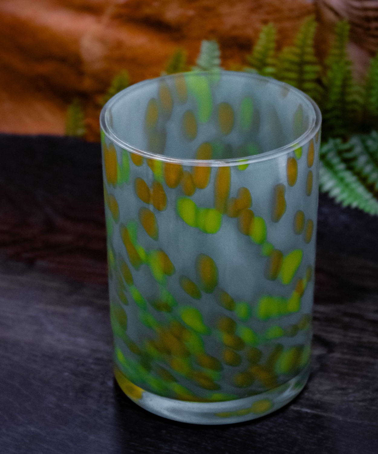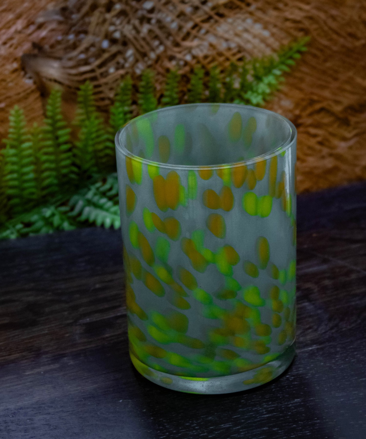Ręcznie wykonany świecznik na podgrzewacz to małe dzieło sztuki użytkowej, które doda charakteru każdemu wnętrzu. Model Jungle Glow wyróżnia się soczystymi, roślinnymi barwami – połączeniem zieleni, żółci i pomarańczu – zatopionymi w mleczno-szklanej strukturze.