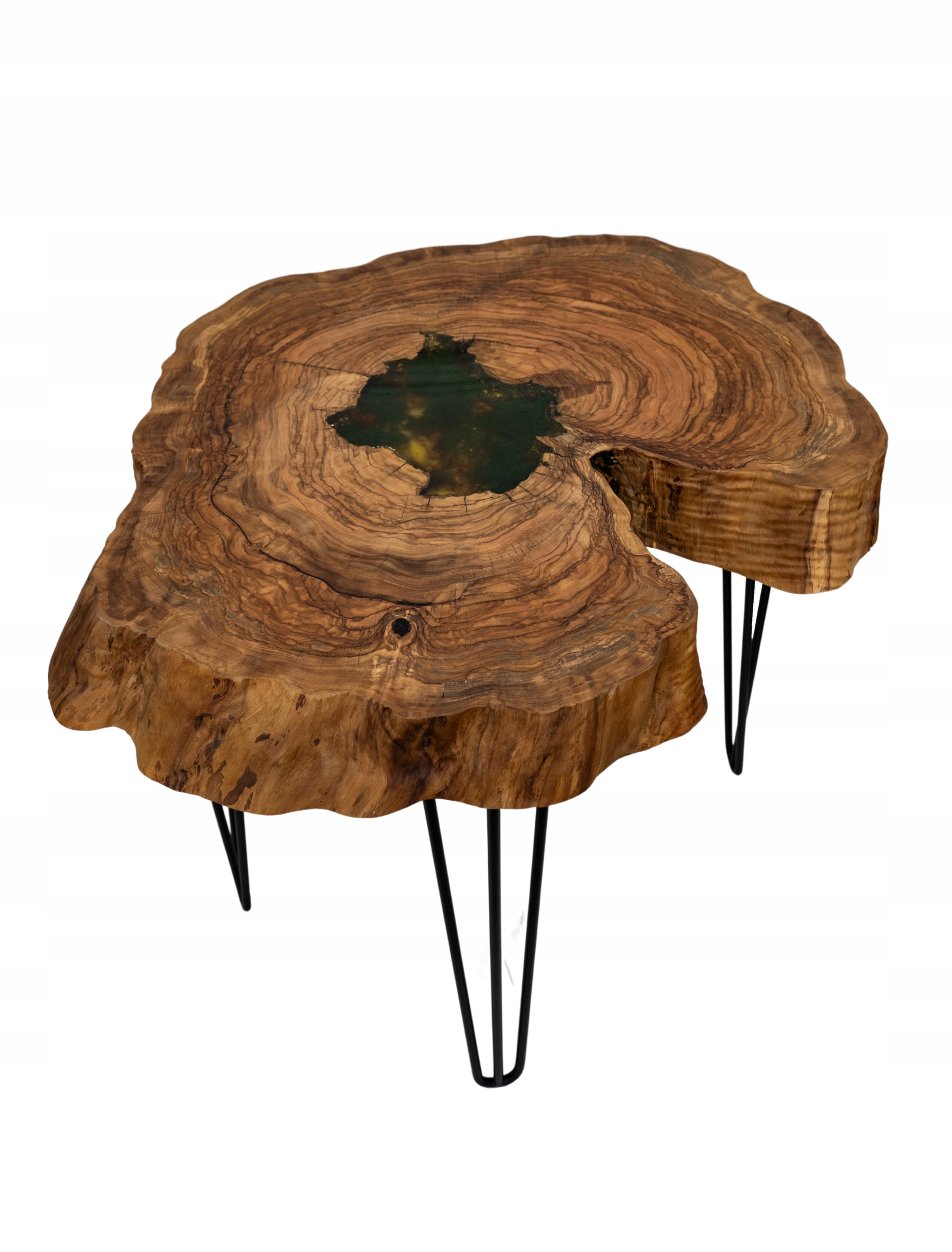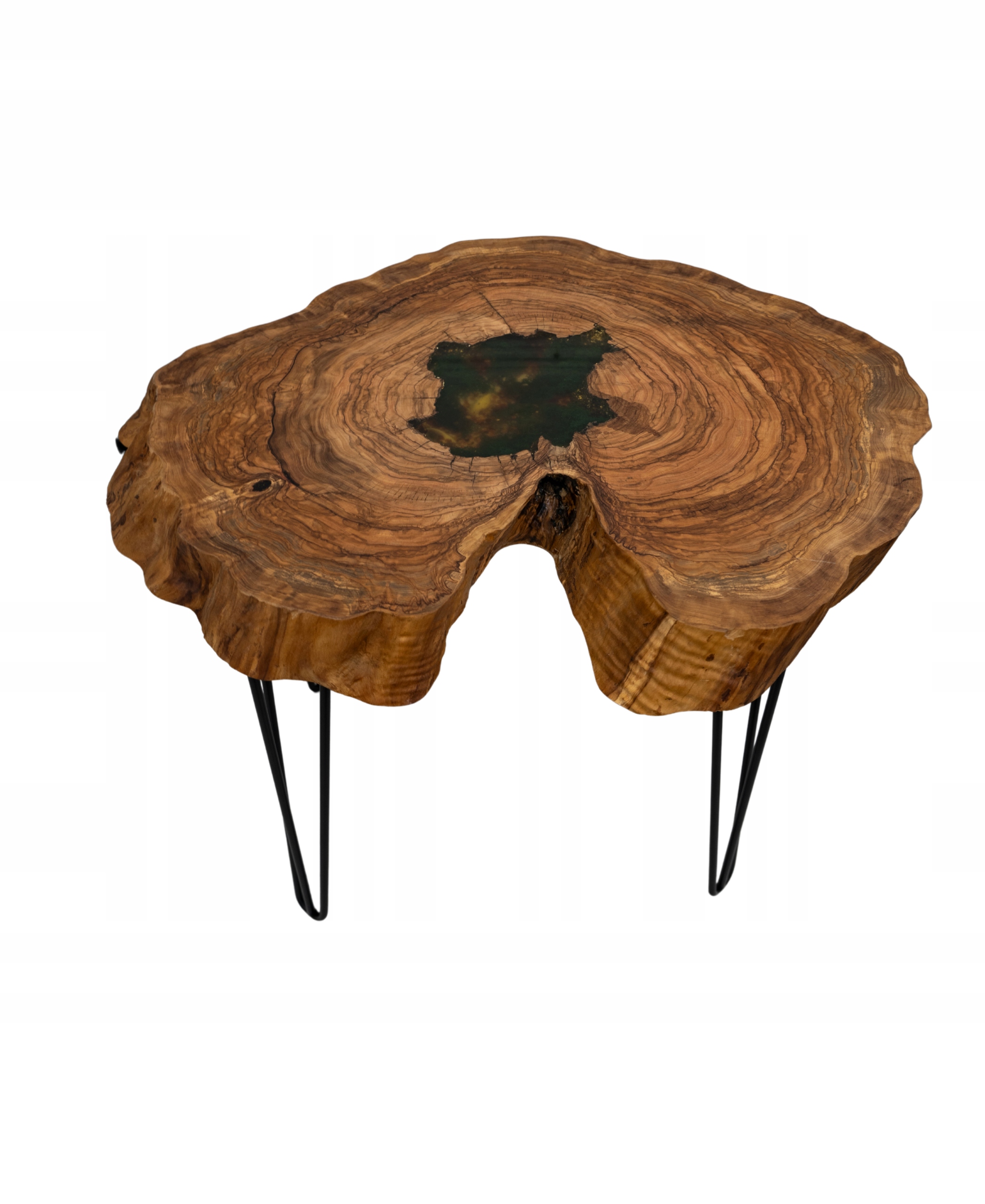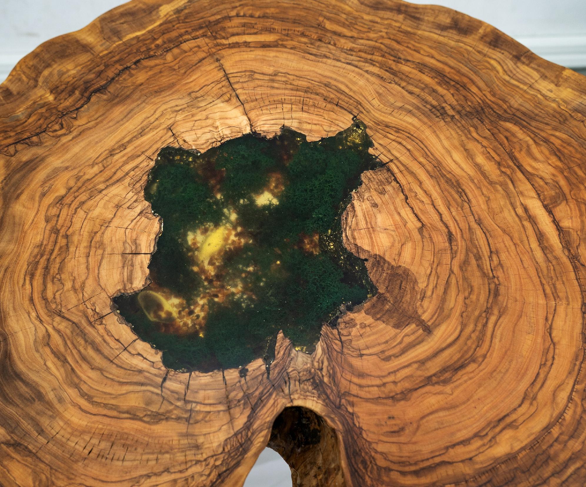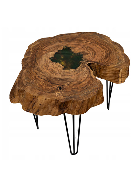 Stolik kawowy Oliva Aurum – drewno oliwne, bursztyn, chrobotek, żywica