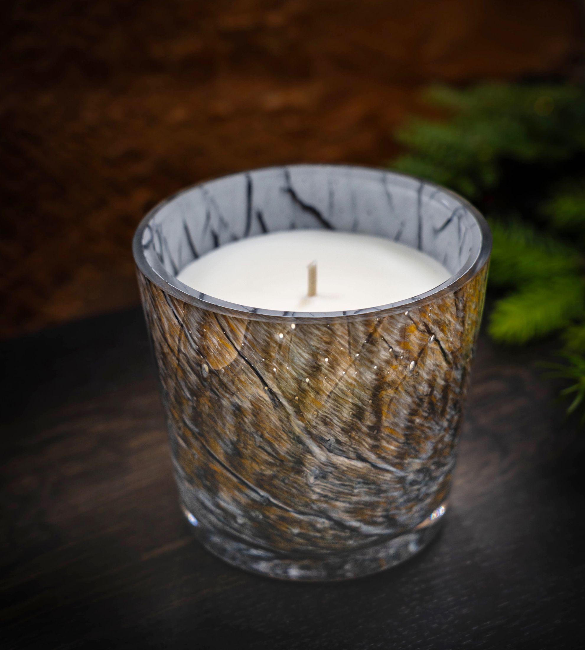 Świeczka zapachowa Arctic Marble Ambery 9×10 cm, ręcznie malowana szklana